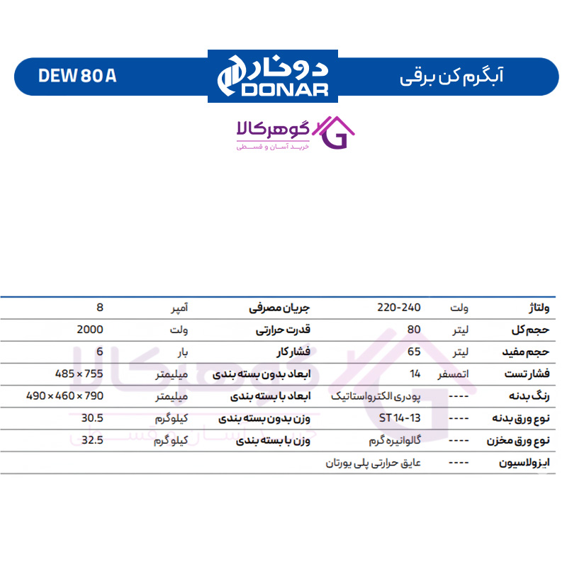 مزایای اختصاصی آبگرمکن برقی دونار مدل DEW 80 A
