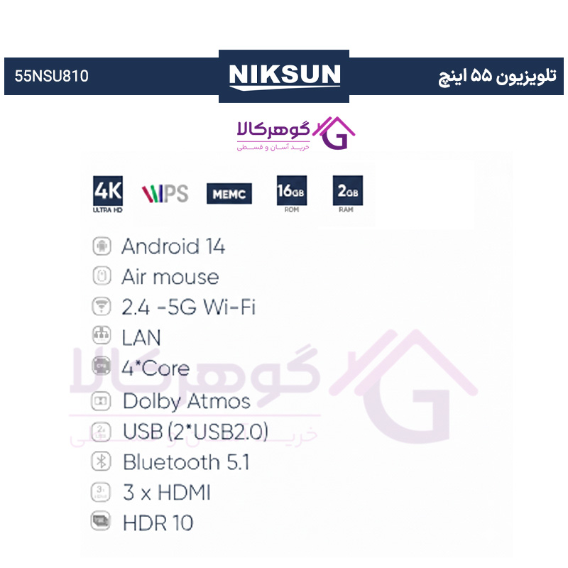 مشخصات و ویژگی های تلویزیون ۵۵ اینچ (SU810 Series) برند نیکسان مدل 55NSU810