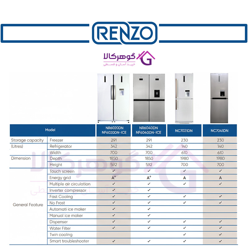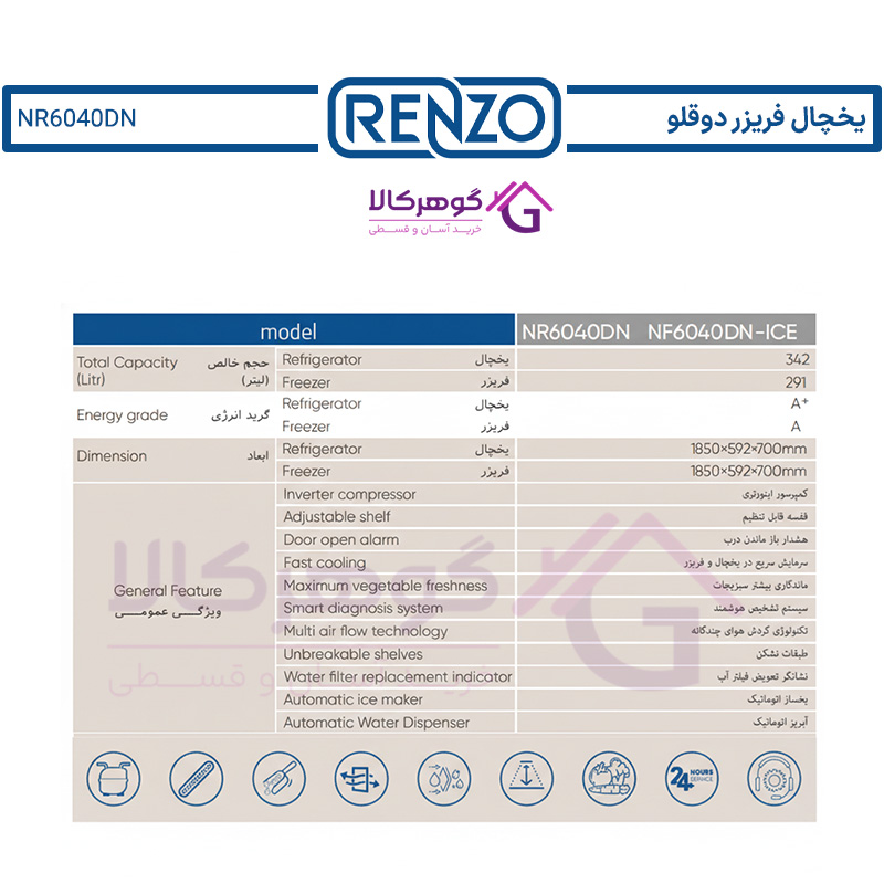 مزایای اختصاصی یخچال فریزر دوقلو برند رنزو مدل NR6040DN / NF6040DN-ICE