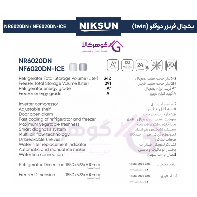 مزایای اختصاصی یخچال فریزر دوقلو (Twin) برند نیکسان مدل NR6020DN / NF6020DN-ICE