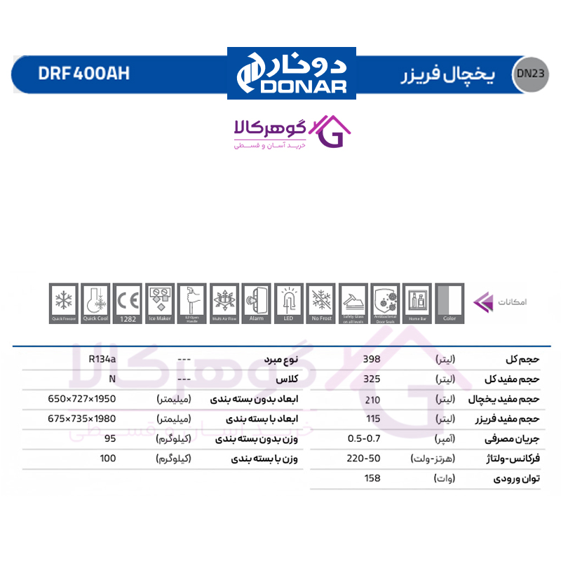 مزایای اختصاصی یخچال فریزر دونار مدل DRF 400AH